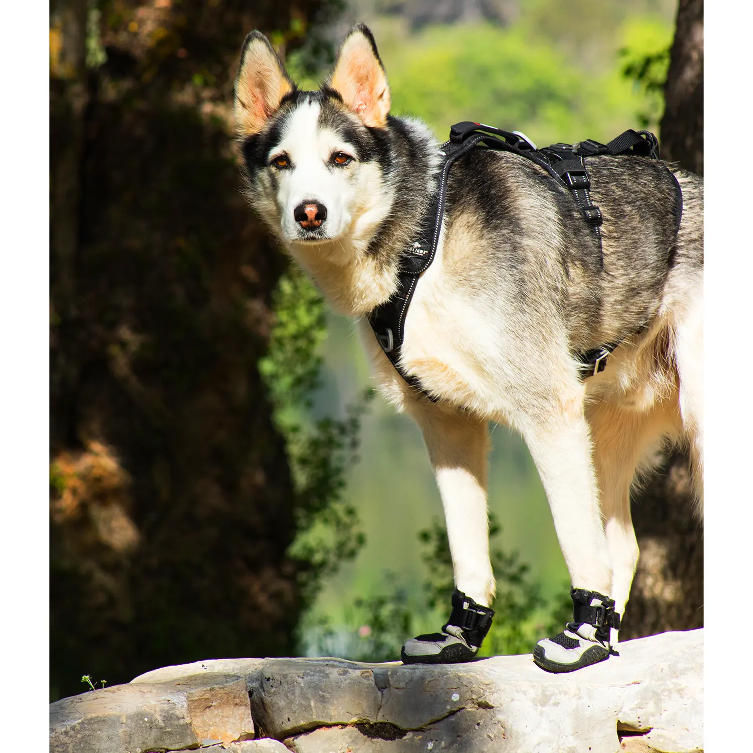 Protection : en cas de blessure du chien, les chaussures protègent les coussinets des éléments extérieurs (gravier, terre…) qui pourraient occasionner une infection et empêcher la guérison des parties lésées.